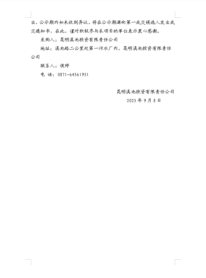 昆明滇池投資有限責(zé)任公司選取滇池流域廠網(wǎng)河湖系統(tǒng)設(shè)施數(shù)據(jù)勘測(cè)及應(yīng)用研究項(xiàng)目審核服務(wù)單位詢價(jià)結(jié)果的公示